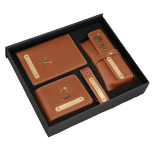 Premium Corporate Promotional Gift Custom Logo 4-in-1 set as Notebook Keychain pen Name card Holder Boxed Collection.